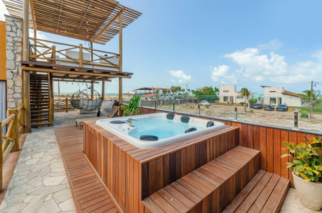 A localização é ótima e segura, o local dispõem de piscina, churrasqueira, solarium ( indico agendar o piquenique para contemplar o pôr do sol ), por fim a jacuzzi aquecida mediante reserva para fechar a estadia com CHAVE de ouro.
